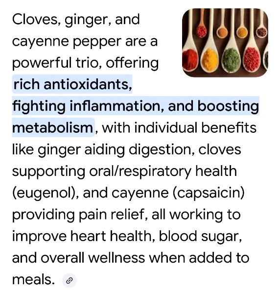 I know; it’s been a minute since I’ve posted. I will try to be more consistent.  I’ve been taking this tea concoction for over a week now because I knew the individual benefits; so I googled the benefits of consuming them together.  Inflammation or something was causing me excess phlegm and hacking every morning to relieve the buildup in my throat. So I started drinking the tea at night and in the morning, sometimes replacing it with just a wedge of lemon in hot water.  I’m happy to report, the condition has subsided.
